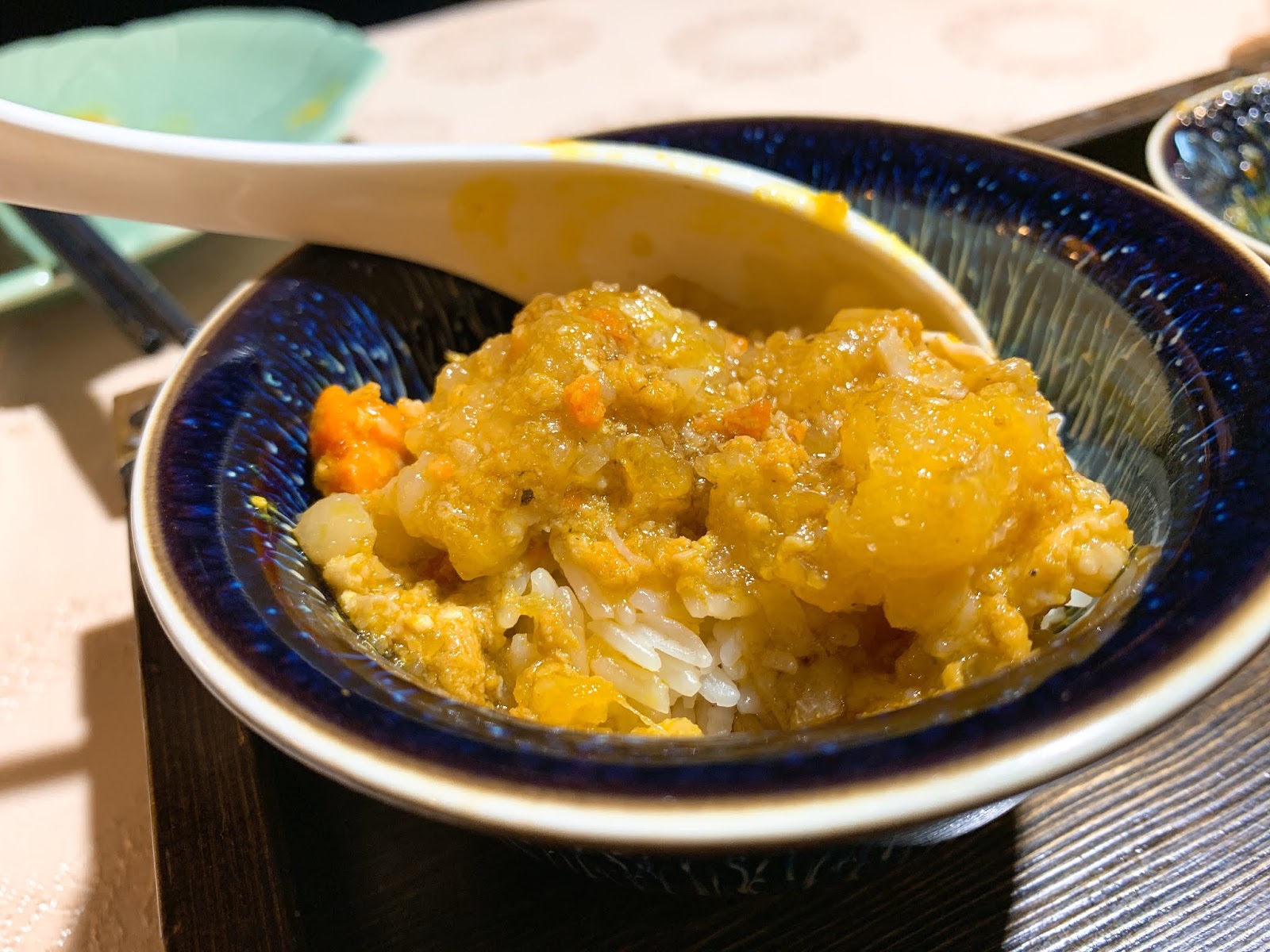 Savoury Crab meat and roe over rice (禿黄油捞饭) is similar to Chirashi (Sashimi over rice bowl). Instead of sashimi, the crab meat and roe mixed with the chewy rice was awesome. The taste was rich but not queasy. This was one of my favourites. (Food rating: 5/5)